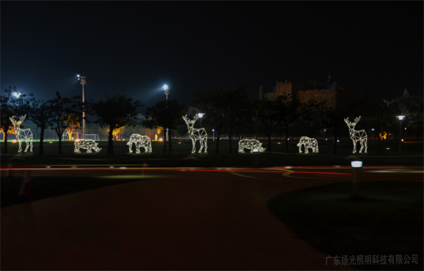 详细摘要: 由锦峰地产投资建设占地22万5千平方米的锦峰·柏嘉运动公园,(位于柏嘉半岛旁)以“运动休闲”和“景观游憩”为主题,景观游憩片包括:野餐区、茶室、漫步园、中心广场及配套游乐设施和停车场。人与动物始终都存在着多方面的情感,设计师由此创作出许多动物灯光小品。如憨态可掬、诚实忠厚的大象,善良可爱的梅花鹿,聪明活泼的小猪都是人们喜爱的塑造题材。从而使公园的夜景环境更祥和、自然、生动,丰富了园林的艺术趣味性。
